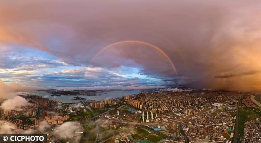 当天空出现缤纷的彩虹,当绚丽的霞光映照城乡,处处呈现如画的美景。