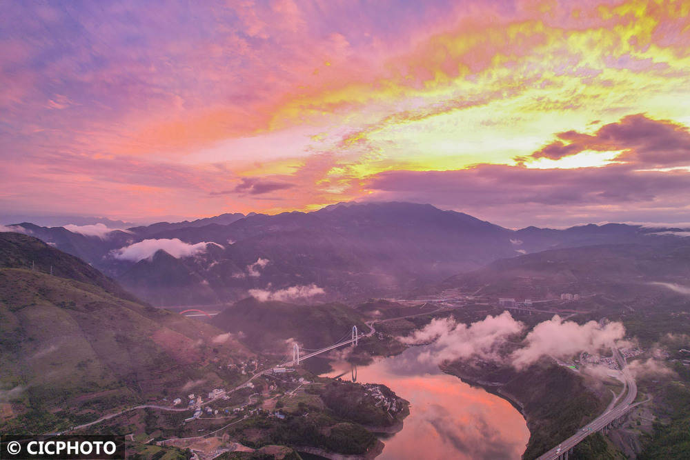 ↑2025年8月22日在重庆市巫山县文峰景区拍摄的朝霞。CICPHOTO/谭昌藩 摄