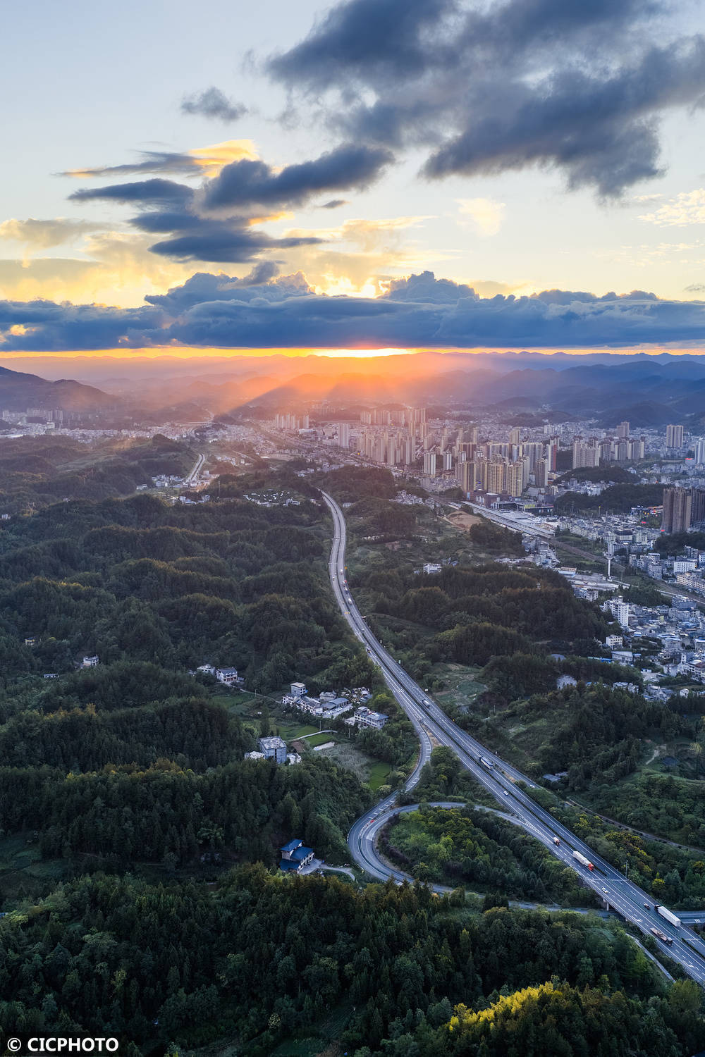 ↑2025年8月20日傍晚在湖北省恩施土家族苗族自治州利川市拍摄的景色。(无人机照片)CICPHOTO/杜维 摄