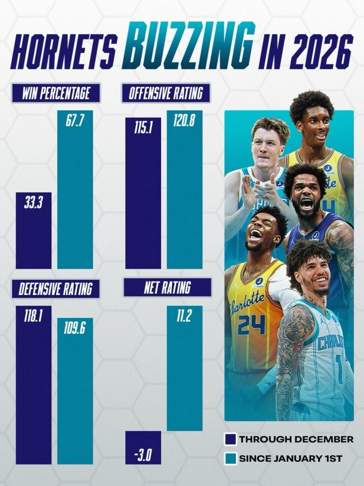 进入2026年:胜率67.7%,进攻效率120.8,防守效率109.6,净效率11.2。
